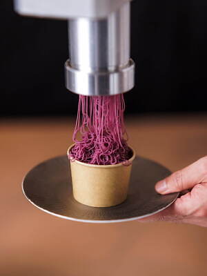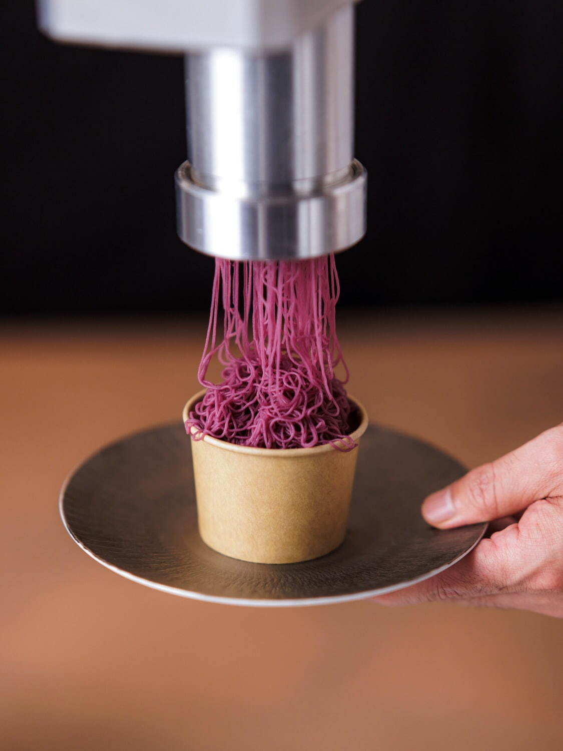注文後に目の前で仕上げてくれる「生しぼりモンブラン」は、紫芋ペーストとミルクジェラートを合わせたまろやかな味わいが魅力。極細の紫芋ペーストがおりなす、やさしい口当たりをたのしんで。
