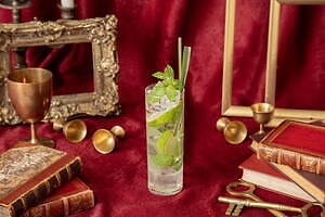 フルーツやハーブなどを用いて、4寮を表現したノンアルコールドリンクもラインナップ。大胆さを持つグリフィンドールをイメージし、フルーツとスパイスを効かせた「グリフィンドール ドリンク」、野心あふれるスリザリンをイメージし、緑のハーブでグラスいっぱいを埋め尽くしたミントとライムの「スリザリン ドリンク」などを楽しめる。