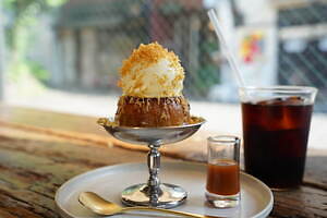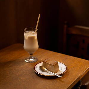 セットドリンクにも注目。たとえば自家製チャイラテは、数種類のスパイスとライム、オレンジ、バニラ、しょうがなどを黒糖と煮詰めた自家製シロップに、アッサムティーとミルクをブレンドしたこだわりの1杯。こっくりとした甘さが、香り高い紅茶プリンとマッチする。このほか、催事限定の紅茶のクリームソーダや、レトロな見た目がキュートな通常のクリームソーダ、コーヒーなども選択可能だ。