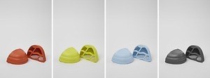 ブラウン×ブルー、ホワイト×オレンジ、ライトグレー×グレー、ブラック×イエローのコントラストの効いた全4色を揃える。