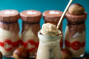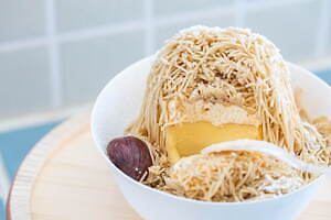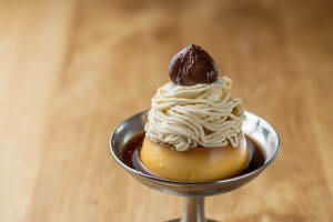 そんな熱海プリンから、2021年に1度だけ登場した“幻”のプリン「熱海プリン マロン」が復活。ベースとなるマロンプリンには、国産和栗のペーストとマスカルポーネを練り込み、甘栗を散りばめたコーヒークリームをのせた。ほろ苦いコーヒーの風味が、香り豊かな栗の味わいを引き立てる逸品だ。