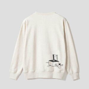 スウェットは、死者の世界の住人が集結した賑やかなグラフィックと、死後の世界で出会うガイコツ姿になったビクターの愛犬スクラップスを主役にした2種類のデザインを用意。スクラップスのスウェットでは、顔部分をアップリケ、体部分を刺繍で表現している。