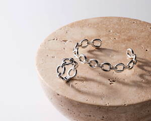 同じく「ロンド」シリーズから、リングとブレスレットもラインナップ。チェーンの一コマ一コマを丁寧に再現したデザインとなっている。リングは存在感がありながらも、繊細な仕上げならではの着け心地の良さがポイントだ。さらにブレスレットは、シルバー素材のスタイリッシュな印象と、ふっくらと丸いパーツが連なる柔らかさの両方を兼ね備えた一品となっている。