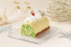 注目は、濃厚な生クリームを贅沢に使用した苺ショートケーキをベースに、ココナッツとラズベリーの“ホワイトローズ型”ムースを添えた「クリスマスホワイトローズ」。白いバラの花言葉が示す通り、“純粋”と呼ぶにふさわしいエレガントなビジュアルが目を惹く。