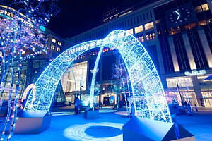 この他、雪の結晶をモチーフにした光の回廊「スノー・ファンタジア」が4丁目に、星や宇宙をモチーフにしたインタラクティブなドーム型イルミネーション「コズミック・スクエア」が5丁目に登場。6丁目の「エメラルド・フォレスト」では、グリーンを基調にゴールドのイルミネーションを織り交ぜ、光の森を表現。きらめくイルミネーションに囲まれながら、「光の迷路」を楽しめる。