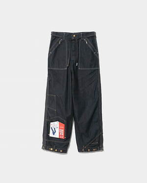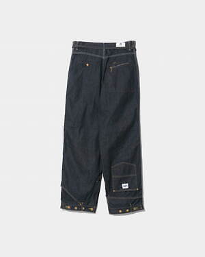 パンツも、“ダブルエンド”ならではのデザインにて登場。両脇のファスナーを開けて、組み替えて閉じることで、上下逆さまに着用することができる仕組みだ。ワークジャケット「91-B」の要素を取り入れたパンツと、木こり職人の為に作られたとされる「77 ロガーパンツ」を組み合わせている。上下反転することで、本来ないはずの位置にポケットが現れるディテールも面白い。