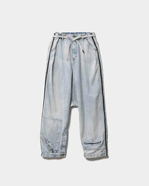 コラボレーションでは、Leeの代表作であるブルゾンとデニムパンツを展開。上下をひっくり返して着用できるビューティフルピープルの技法“ダブルエンド”と、Leeが持つクラフトマンシップが融合したデザインとなっている。カラーは、ハンドクラフト感ある濃淡が特徴的なブリーチと、ワンウォッシュのインディゴの2色をラインナップする。