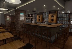 昼はカジュアルなカフェ、夜はアナログレコードを聴きながら食事も出来るミュージック・バーになる。