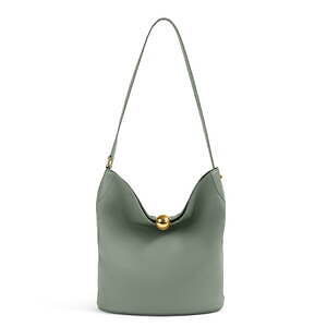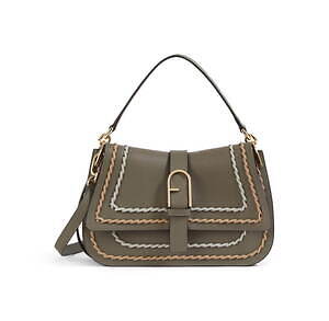 球体のメタルパーツがスタイリッシュなアイコン「フルラ スフェラ」に、新型が仲間入り。落ち着いた色味のグリーンやモーヴをベースにしたレザーのクラッチバッグや、グリーンの柔らかなレザーをたっぷりと用いた「フルラ スフェラ ソフト」のバケットバッグが揃う。