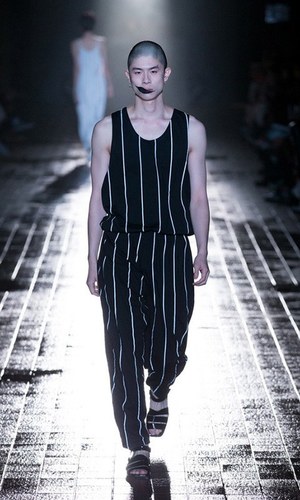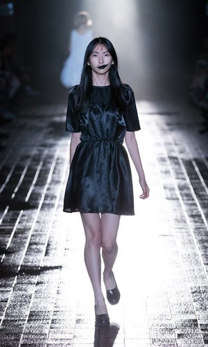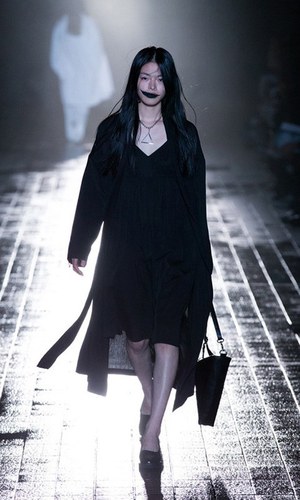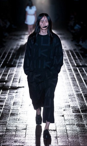 現れたモデルの顔には、洋服を引き立てるかのようにややオーバー気味なメイクが施されている。今シーズンも、ブランドのコンセプトである「Unisex + One Size + Original」をテーマに、IKUMIらしいエッジの効いたコレクションが展開された。