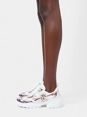 「ヴィヴ オン ザ ラン」は、シューズの内側に美しいアーチを描くロジェ ヴィヴィエのアイコニックなヒールのディテール“ショック”をモダンに再構築した、厚底ソールが印象的な1足。