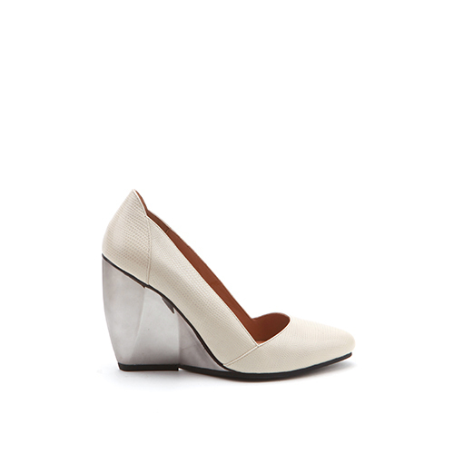 注目は、建築家フランク・ゲーリーが設計を担当したビルバオ・グッゲンハイム美術館にインスピレーションを受けた、新作の「Sera pump」と「Sera Bootie」。ダイヤモンドカットのように、さまざまな角度から不規則に削られたヒールは、見る角度によってヒールの形が異なり、アート作品のよう。