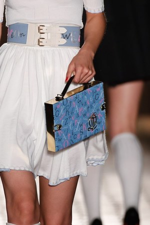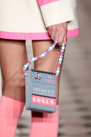 今シーズンも、人気のブック型クラッチは健在。教科書やチョークなどのステーショナリーを題材に、今コレクションのテーマをぎゅぎゅっと詰め込んだ一品に仕上がった。さらに地球儀モチーフのバッグや大きなサイズの新作バッグが、コーディネートを華やかにアップグレード。今季は、ウキウキと弾んだ気持ちを表現した装いや小物がランウェイを飾る、キュートなコレクションとなった。