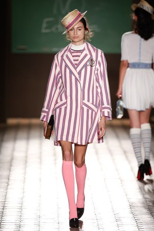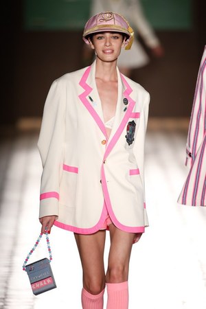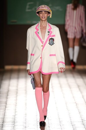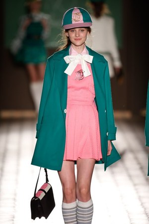 少女のとき制服に強い憧れを抱いてた、デザイナーのオランピア・ル・タン。今季はそんな彼女の可愛らしい願いを叶えるように、ラブリーなスクールスタイルが集結。ピンクやグリーン、ブルーなど鮮やかなカラーとともに、元気いっぱいのショーが幕を開けた。