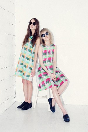 そのイメージをもとに、職人の高度な技術から生まれる、上品なテキスタイルを組み合わせた今季。先シーズンに引き続き、新潟の呉服メーカーと共に制作したというコットン、シルクなどの天然繊維には、ピンク、ブルー、グリーンなどが組み合わさったチェック柄のオリジナルプリントが施された。リラクシングなサックドレスに用いられたその素材は、ポップな印象を与える。またサングラスやシューズといった小物を、落ち着いたトーンでまとめることで、こなれたコーディネートを完成させた。