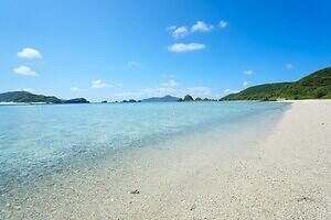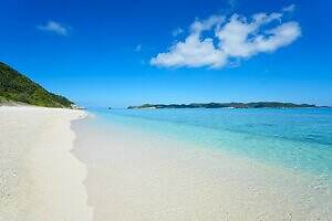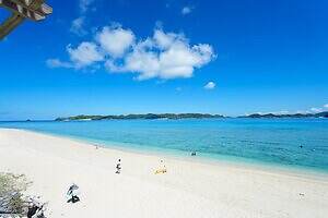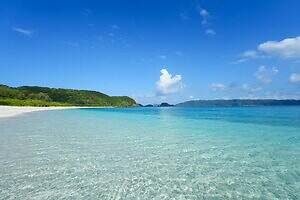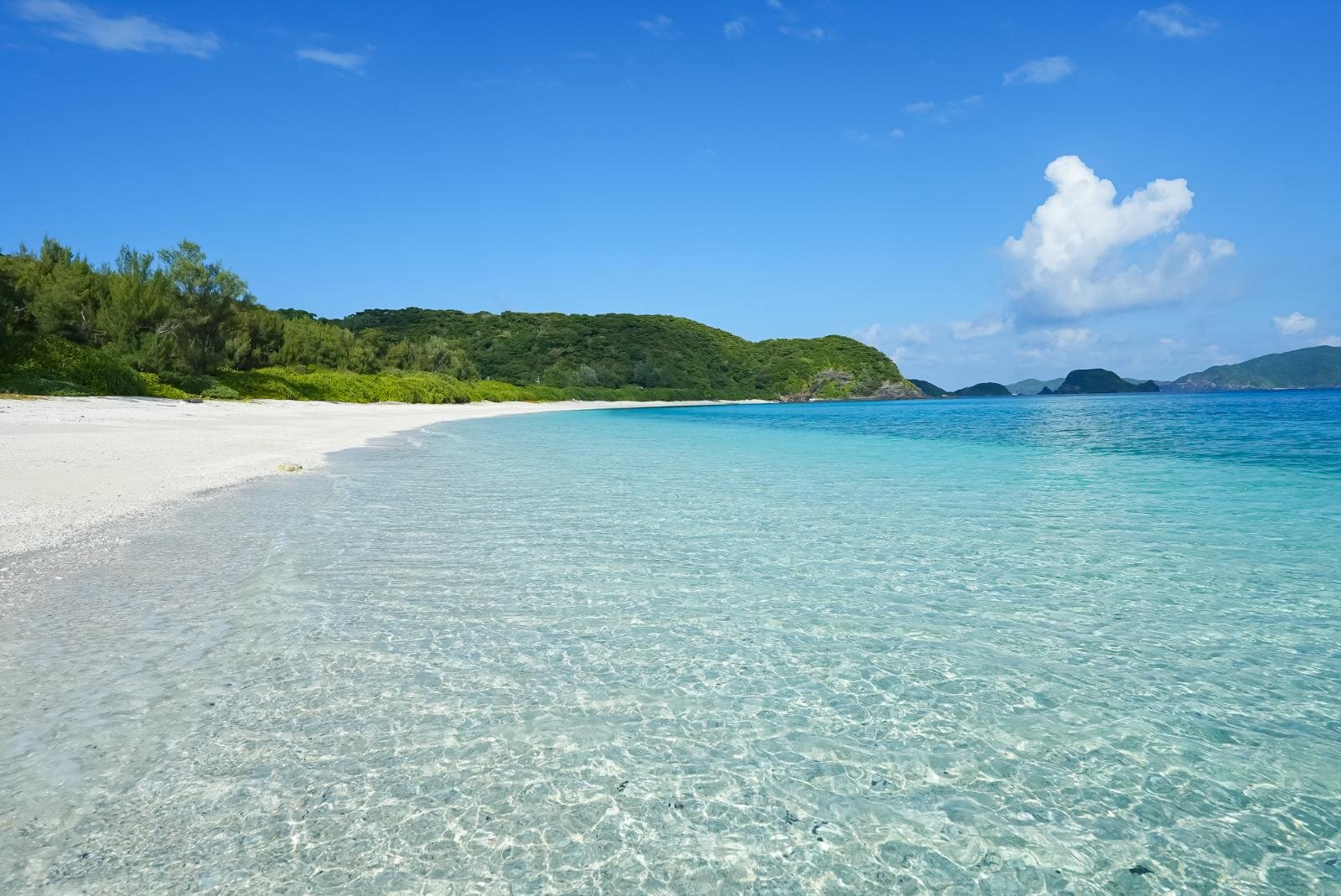阿嘉島を代表する白砂の遠浅ビーチで”ケラマブルー”の代表格。圧倒的な透明度の高さで、ビーチ遊びからシュノーケルなど幅広く楽しめる。