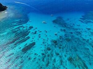 ・遠浅で沖に行くほどサンゴが点在、シュノーケルしやすい。