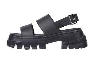 街歩きにもおすすめの「チャンキーシティサンダル」は、存在感抜群のゴツゴツとしたチャンキーソールがポイント。ボリューム感のある足元を演出しつつ、高低差のないフラットな8cmヒールは安定感も抜群。バックストラップでしっかりと足首をホールドしてくれるので、街中でも歩きやすいのが嬉しい。
