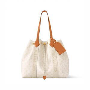 「マリーナ・トート」は、バケツ型のフォルムが特徴的な「ノエ」とセーリングの世界からインスピレーションを得た大容量のショルダーバッグ。織りの技法を用いた「LOUIS VUITTON」ロゴ入りのサイドバンドが印象的。紐で口を絞って閉じるドローストリング仕様の柔らかなフォルムで、軽快な持ち運びを実現した。
