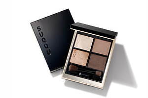 左上から、3色のパールを詰め込んだクリアなベースカラー、陰影を仕込むソフトなマットベージュ、繊細に煌めくパールベージュ、全体を柔らかく引き締めるブラウンをセット。4色をレイヤードするだけで、簡単に上品かつ凛とした瞳印象を演出してくれる。