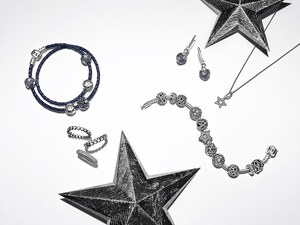 テーマは、「COSMIC」。神秘的な美しさで人々を魅了する宇宙からインスパイアを受けた今コレクションは、星屑を散りばめたようなキラキラとした輝くジュエリーが数多く展開された。ミッドナイトブルーのムラノガラスや、星のような輝きを持つスタースタッズがあしらわれたピアスやリングは、モノトーンになりがちな秋冬の装いにアクセントをプラス。