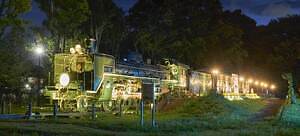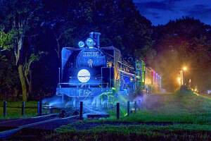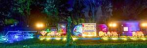 蒸気機関車展示場では、大正時代の浪漫あふれる景色を演出。夏の花・ひまわりにモダンな大正柄、緋毛氈(ひもうせん)を敷いたSL階段など、趣ある情景が広がる。明治から昭和まで活躍した蒸気機関車が、ひまわり畑を駆け抜けるように現代に蘇る。夜間にはガス灯を模した柔らかな灯りやSLのライティングが行われ、このイベント期間でしか見ることのできない妖艶で華やかな景色を楽しめる。