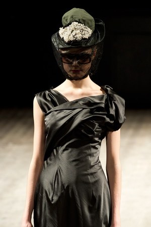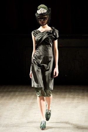 コレクションのテーマは、ガーデニングを楽しむ淑女のある1日と、写真家ロバート・メイプルソープの花の写真とのこと。 カラーパレットは白を黒を中心とし、メイプルソープのモノクロ写真の静謐な佇まいを連想させる。それにベージュ、モスブラウンなど、ヨーロッパの庭園を連想させるような上品なカラーが加わる。レッドやグリーン、ホワイトといった鮮やかな色のリボンのヘアピースはまるで庭に咲く花のよう。