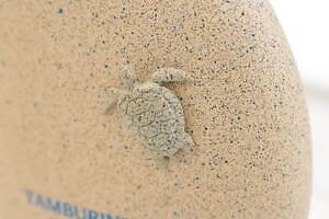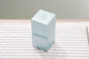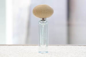 新作の注目ポイントは、ケースにも。アイコニックな卵型ケースを夏の海辺を連想させる砂のような質感にアップデートし、砂浜に佇む亀のモチーフを添えた。キャップを外すと、まるで海のように青みがかった美しいボトルが現れる。