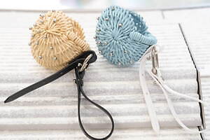 編み目部分には、まるでパールのような小さなシルバーのボール装飾がキラリと輝き、アクセントを添える。付属のレザーベルトを使えば、バッグやパンツ、ベルトなどにアクセサリー感覚で装着可能だ。