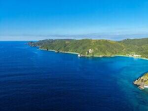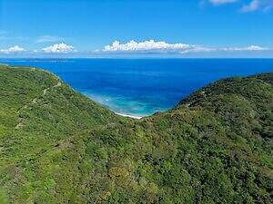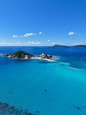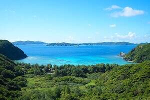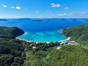 沖縄本島の西約30〜40kmに広がる慶良間諸島の海は”ケラマブルー”と呼ばれ、サンゴ礁に抱かれた群島。その中の1つ、渡嘉敷島は、断崖絶壁、切り立つ岬と入江が描くワイルドな地形に、コバルト色の湾が点在する“景観映え”の島として知られる。