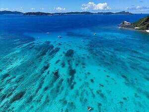 渡嘉敷島のビーチは少し沖に出ると、さらに海の透明度が上がり、ボートアクティビティがおすすめ。