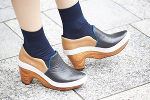 木靴のクロッグは、古くから親しまれてきた伝統的なシューズ。木製アウトソールの代わりに、ラバーソールを使用し木目プリントを施した「スポーツ クロッグ」は、見た目からは想像がつかないほど軽量で、快適な履き心地だ。ブラックとインディゴのコントラストから生まれるモダンなデザインと、スポーツ要素が融合したユニークなデザインに仕上がった。
