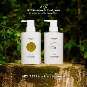 「uka イズ」シリーズは、数々のビューティアワードでベストコスメに輝いたヒーロー製品。伊豆半島の森で育ったクロモジがキー成分で、髪質・髪悩みに合わせて3シリーズからセレクトできる。