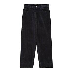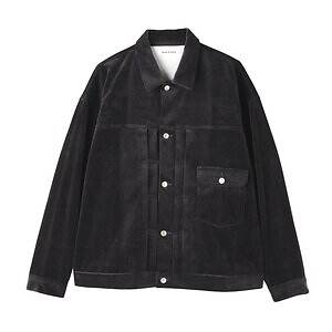 ジャケットは、有名デニムブランドのヴィンテージジャケットからインスパイア。フロントに配された2本のプリーツや、1つの胸ポケットなど、「ファースト(1st)モデル」のジャケットに見られるディテールを踏襲しつつ、ゆったりとしたオーバーサイズで現代風のシルエットに仕立てている。