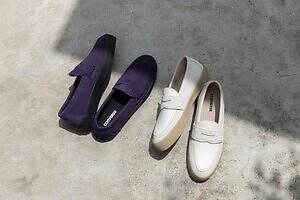 「CS ローファー Ⅱ SK」は、ローファーシルエットをベースに、スエード素材とクレープ風ソールを組み合わせたモデル。深みのあるパープルや柔らかなベージュなど、秋冬らしいカラーリングが足元にアクセントを添える。全体にスエードを使用し、ソールにはクレープ風デザインテープを採用している。