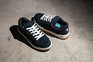 「スケートスター SK OX」は、1990年代の「スケートスター(SKATESTAR)」をベースに、スエードアッパーや一つ星デザインなどのクラシックなディテールを再現。現代的なスケート機能を備え、ブラックのスペアシューレースが付属する。