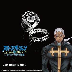 「ジョジョの奇妙な冒険 ストーンオーシャン」は、荒木飛呂彦の人気漫画『ジョジョの奇妙な冒険』を原作とするアニメ。ジャムホームメイドとのコラボレーションでは、シリーズ唯一の女性主人公である空条徐倫や、その父・空条承太郎など、個性的なキャラクターたちをイメージしたリングやネックレス、イヤーカフを展開する。