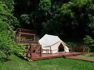 リニューアルの目玉となるグランピング施設は、メタセコイアの樹々に囲まれた「メタセコイアテラス」、森を眺めながらハンモックを楽しめる「ハンモックテラス」など、グランピングテント・コテージ合わせて計45棟を新設。自然豊かな植物園内で、快適な宿泊を楽しむことが可能だ。愛犬と一緒に宿泊したい人向けに、2棟のドギーコテージも用意している。