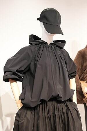 スポーティなフーデッドブルゾンは、ほどよくシアーな素材感がポイントだ。フロントのギャザーやふっくら丸みのあるシルエットなど、エレガントなディテールも見え隠れ。ボリューミーなタフタ素材のスカートを合わせれば、スポーティーでありながらフェミニンな雰囲気漂うコーディネートに。