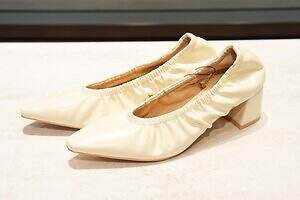足元は、グリッター煌めく「センターシームバレエシューズ」をチョイスして遊び心をプラス。Vカットのアッパーが足元を華奢にみせてくれるのが嬉しい。クッション性も抜群で、歩きやすく通勤通学用にもぴったりだ。