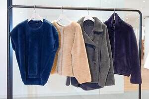 柔らかな風合いのフェザーヤーン素材は、コクーンベスト、ジップアップブルゾン、ニットコート、カーディガンとラインナップ豊か。特にカーディガンは、前後どちらをフロントにしてもOKな2WAYなのが嬉しい。