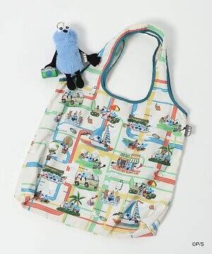 スンスンのぬいぐるみとエコバッグのセットも注目アイテム。チェーン付きぬいぐるみの背中にはファスナーが付いており、その中にエコバッグが収納されている仕組み。バッグには、船に乗ったり、島でのバカンスを楽しんだり、気球に乗って空を飛んだりと、旅を楽しむ様子が地図のように描かれている。