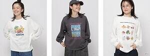 ロングスリーブTシャツは、スンスンをプリントした3種類を展開。フルーツに埋もれた姿、花畑にたたずむ姿、美味しそうな料理から顔を覗かせる姿など、キュートなデザインが揃う。