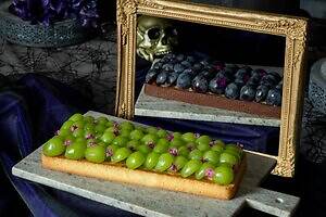 また、シャインマスカットを贅沢に敷き詰めた“夢見心地”な「ドリーミングフレッシュマスカットタルト」をはじめ、栗や洋梨など秋の味覚を贅沢に使用した優雅なケーキも勢揃い。夢か悪夢か、コントラストを楽しめるハロウィンスイーツを取り揃える。