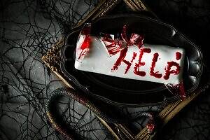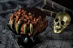 目を惹くのは、怪しげな“闇落ち”スイーツたち。バンパイアの指に鷲掴みにされたような「バンパイアのフィンガームース~バナナキャラメルの棺~」、“HELP”と書かれ血みどろになった「“HELP ME” 触れたら危険 闇夜のババロア」など、ちょっぴり不気味なビジュアルに。