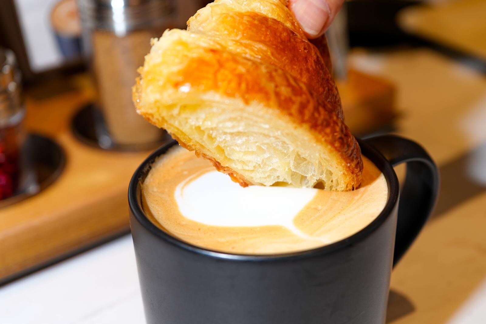 「コルネッティ」は、そのままではもちろん、提供されるコーヒーにディップして楽しむのもおすすめ。ひたすことでコーヒーの風味が合わさり、食感の変化も楽しめる。