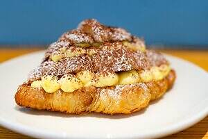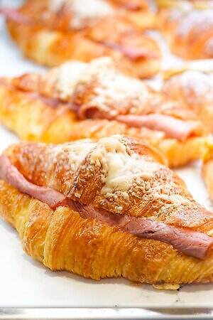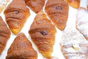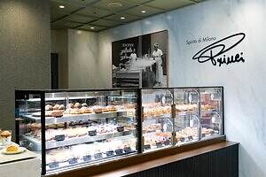 看板メニューの「コルネッティ」は、イタリアンベーカリー「プリンチ」の定番商品として愛されているイタリア流クロワッサン。楽しい食感が魅力で、表面はザクザク、中はフワッとエアリーだ。出来立てだけでなく時間がたっても同じ食感が楽しめるのは、本場ミラノの製法ならでは。