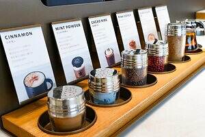 また店内には、自由にドリンクのアレンジができるコーヒーディスカバリーカウンターも設置。カカオニブや黒糖、ミントパウダーなど、通常の店舗では展開されていないアイテムが並ぶ。コーヒー選びの後は、自分好みのカスタマイズを見つけるのも楽しそうだ。