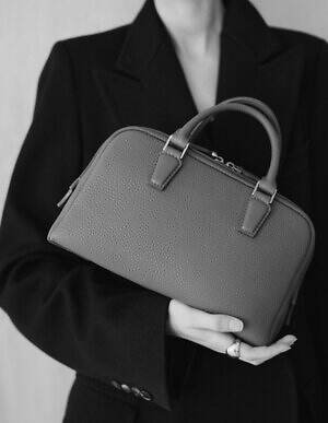 ボストンバッグは、革本来の美しさを堪能できるシンプルな佇まい。素材には、イタリアの老舗タンナー・イルチア(ILCIA)社が手がけた高品質のイタリアンシュリンクレザーを採用。特殊な加工によって、通常よりもハリとコシのある素材となっている。また、しっかりとした厚みだからこそ際立つシボのリッチな質感も魅力だ。金具はシルバーで統一し、スタイリッシュな印象に仕上げた。