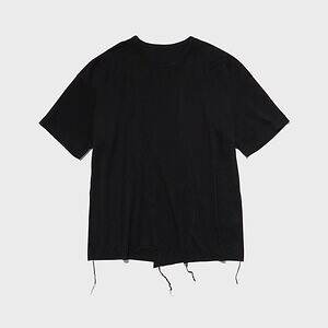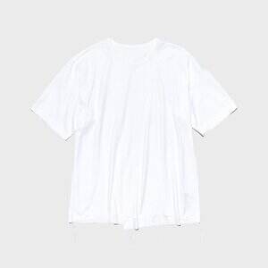Tシャツは、サルバムが多用する断ち切りで仕上げることで、さりげないアクセントをプラス。素材には、ウジョーのなめらかなコットンを採用している。カラーは、ホワイトとブラックの2色を取り揃える。